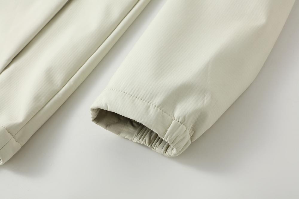 Smooth full-zip closure with precision stitch lines and reinforced edges