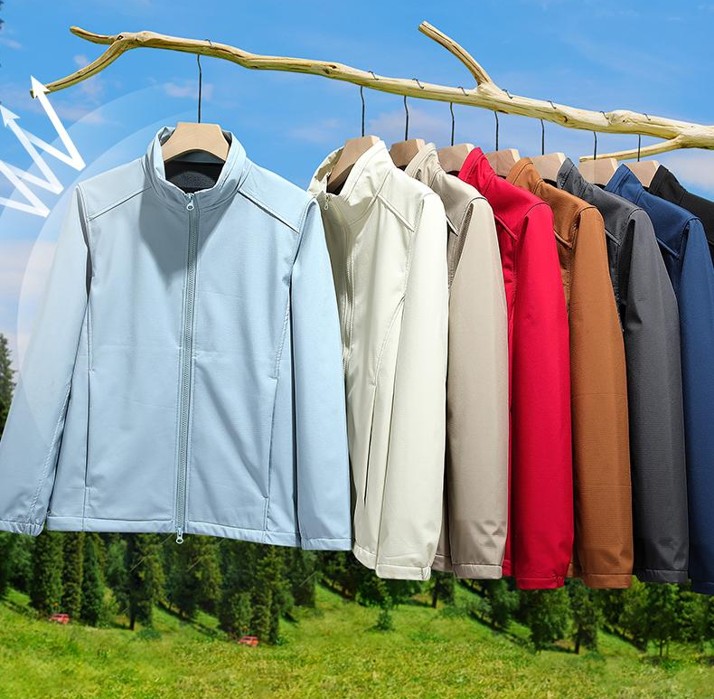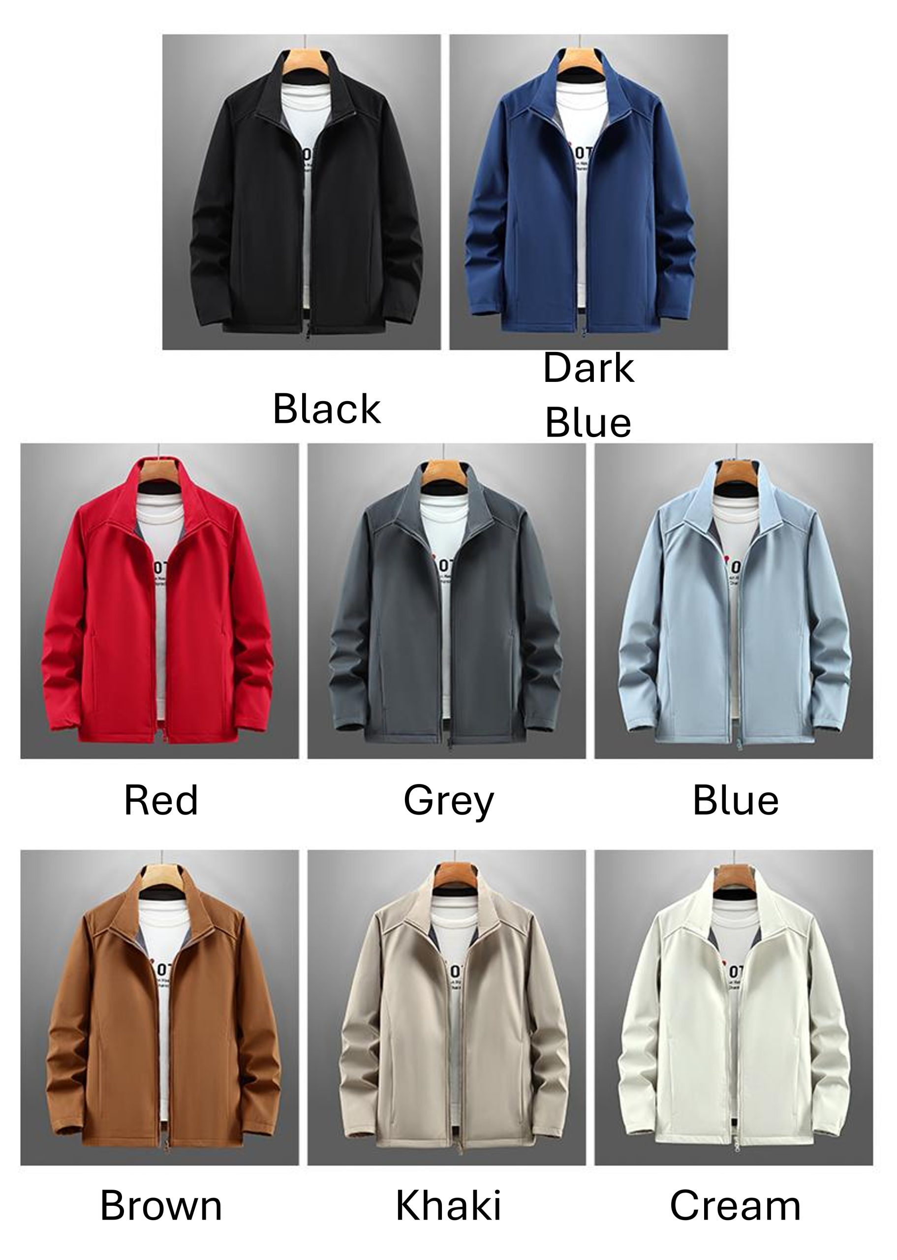 Sizes S–4XL | Unisex fit with structured stand collarMaterial: 75D high-density elastic polyester shell + nano fleece lining