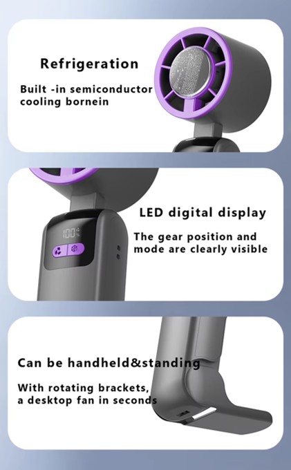 ❄️ Instant Cooling Technology: Equipped with advanced semiconductor cooling that rapidly drops surface temperature to 0°C, giving an air-conditioning effect anywhere you go.💨 Dual-Mode Function: Combines strong airflow with cooling plate technology — ideal for hot outdoor days, workouts, or travel.