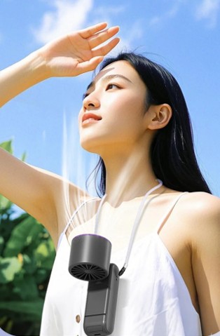 🧊 Convertible Design: Can be worn around the neck, handheld, or placed on a table using its built-in rotating base.
