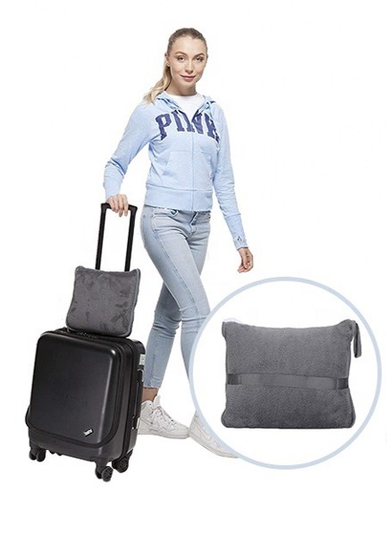 ð§ģ 2-in-1 Travel Essential: A plush foldable blanket that transforms into a compact zip pouch for easy carrying â perfect for flights, car rides, and office naps.ðĻ Smart Luggage Strap Design: Built-in elastic band allows it to slip securely over suitcase handles or backpacks, making it ideal for travelers on the go.
