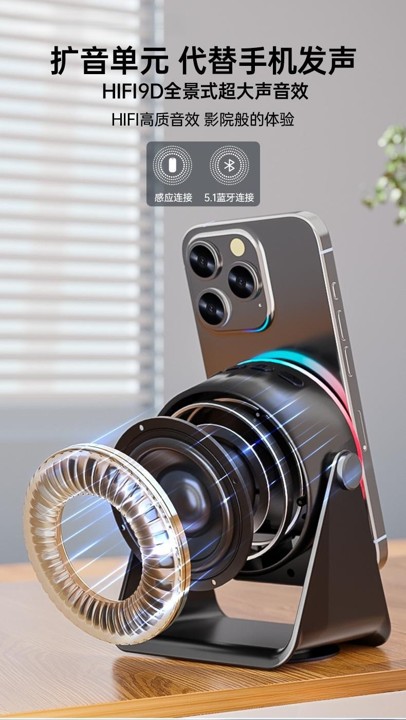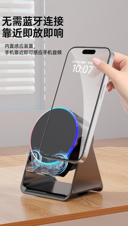 ⚡ Dual Audio Modes: Choose between Bluetooth connection or sensor induction playback — play music instantly when you place your phone on the stand.