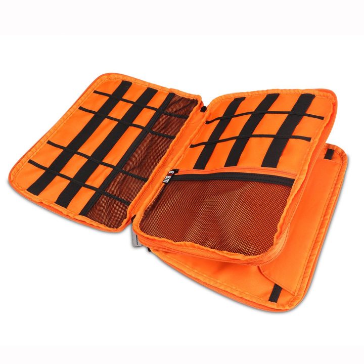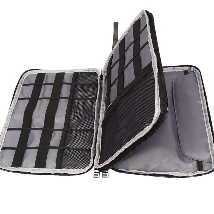 • Compact design secure various cables, power cords, charger, flash drive, memory cards, external hard drive, power bank, and other gadgets.