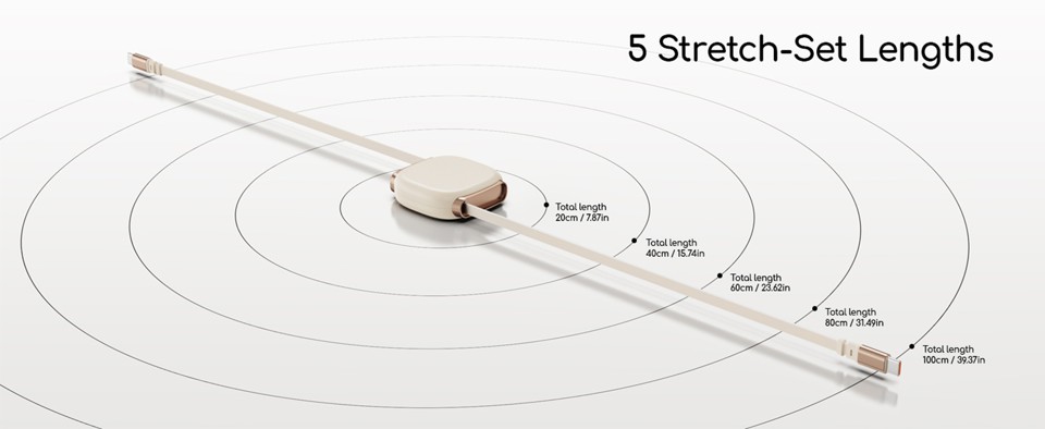 🔌 Powerful Output: Supports up to 240W PD fast charging (100cm full length).📏 Telescopic Design: Adjustable to 5 preset lengths – 20cm, 40cm, 60cm, 80cm, 100cm.