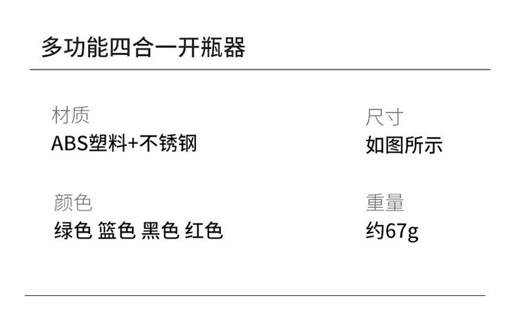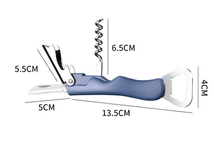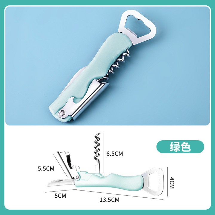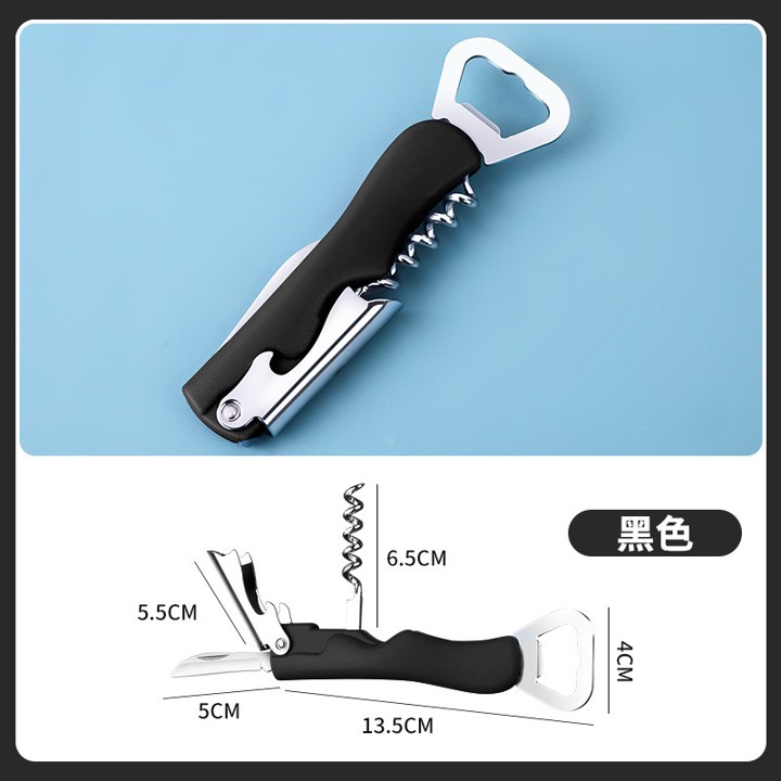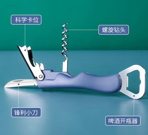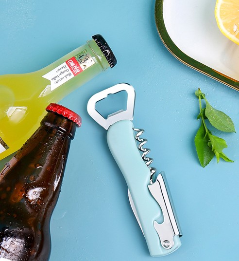 Four-in-one multifunctional tool opens various bottle types.