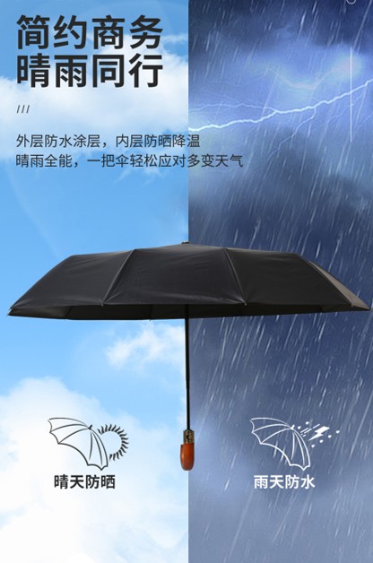 β¨ Why Youβll Love It:Stylish yet tough, this umbrella protects you from blazing sun βοΈ and stormy rain π§οΈ with ease. Its ergonomic wooden J-handle feels premium and comfortable, while the auto mechanism opens in secondsβperfect for modern business or casual use.